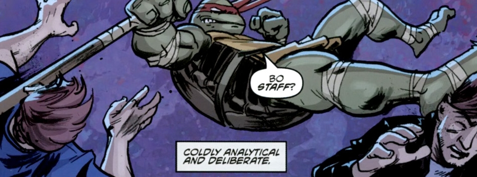 Zwischenzeitlich habe sich in der Gegenwart das Opfer häuslicher Gewalt, welches auf den Namen Casey Jones hört, und die unbekannte Schildkröte Freundschaft geschlossen. Gemeinsam wollen sie nun durch die Straßen ziehen und für ein wenig Ordnung sorgen. Dabei erklärt Casey seinem neuen Freund auch weshalb er seine Hockeymaske trägt, wobei er dies ein wenig lapidar mit seinem „Hockey-Ding“ umschreibt und ein paar kleinerer Probleme die während des Spiels auf der Highschool deswegen hatte. Ausserdem offenbart sich Casey weshalb er trotz seiner kämpferischen Fähigkeiten nicht gegen seinen gewehrt hatte.