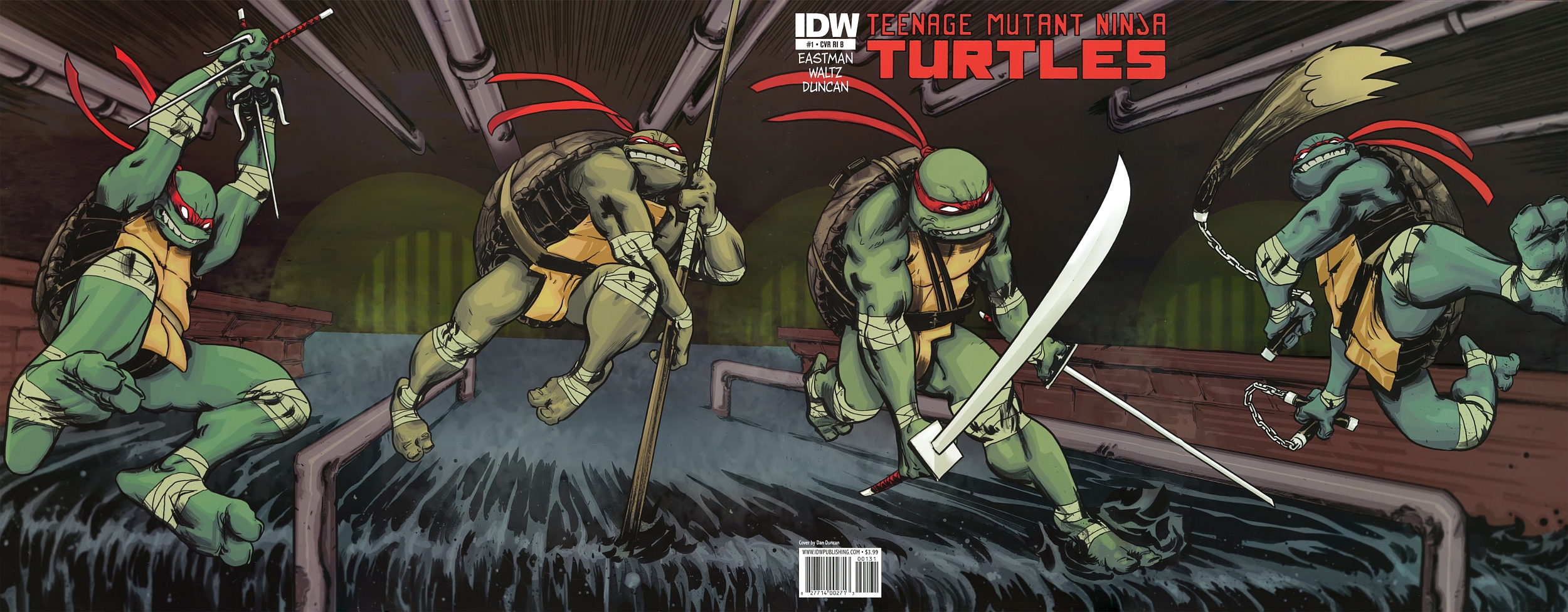 Wie bei IDW (und Avatar) ja inzwischen fast üblich, wurde auch diese neue Serie mit einem Haufen an Variantcovern beglückt. Allein die Nummer 1 kam mit stattlichen 11 Covern daher. Hier abgebildet seht ihr nun das Double-Gatefold-Variant welches als Grundlage die Vier Einzelvarianten (Cover A bis D) als ausklappbares 4-seitiges Cover zeigt.
