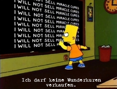 Mai 8 2012 Der tägliche Simpsons-Tafelgag #69 Tach auch. Und hier ist wieder ein neuer Simpsons-Tafelgag. Viel Spaß damit! © Copyright Matt Groening & 20th Century Fox Staffel 4, Folge 19: “Wir vom Trickfilm (The Front)” (9F16) Deutschland-Premiere: 30. 10. 1996 US-Premiere: 15. 04. 1993 Ähnliche Artikel: Der tägliche Simpsons-Tafelgag (Staffel 4) Der tägliche Simpsons-Tafelgag (Staffel 3) Der tägliche Simpsons-Tafelgag (Staffel 2) Der tägliche Simpsons-Tafelgag (Staffel 1) Bewerten:Teilen: Klicken, um auf WhatsApp zu teilen (Wird in neuem Fenster geöffnet) WhatsApp Tweet Klicken, um einem Freund einen Link per E-Mail zu senden (Wird in neuem Fenster geöffnet) E-Mail Klicken zum Ausdrucken (Wird in neuem Fenster geöffnet) Drucken Auf Tumblr teilen Klick, um auf Reddit zu teilen (Wird in neuem Fenster geöffnet) Reddit Klicken, um auf Telegram zu teilen (Wird in neuem Fenster geöffnet) Telegram Pocket Zum Teilen auf Mastodon klicken (Wird in neuem Fenster geöffnet) Mastodon Zum Teilen auf Nextdoor hier klicken (Wird in neuem Fenster geöffnet) Nextdoor Gefällt mir Wird geladen … Ähnliche Beiträge