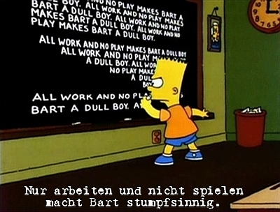 Einen schönen Montagmorgen wünsche ich euch allen. Heute ein klein wenig später als sonst, aber hier ist der neue Simpsons-Tafelgag. Diesmal gibt es einen sehr großen Sprung, von Folge 2 bis zur Folge 9. Die dazwischen liegenden Episoden beinhalten leider keinen Tafelgag und die Infos um welche Folgen es sich handelt und wann diese Premiere hatten, gibt es diesmal am Schluss des Tafelgags.