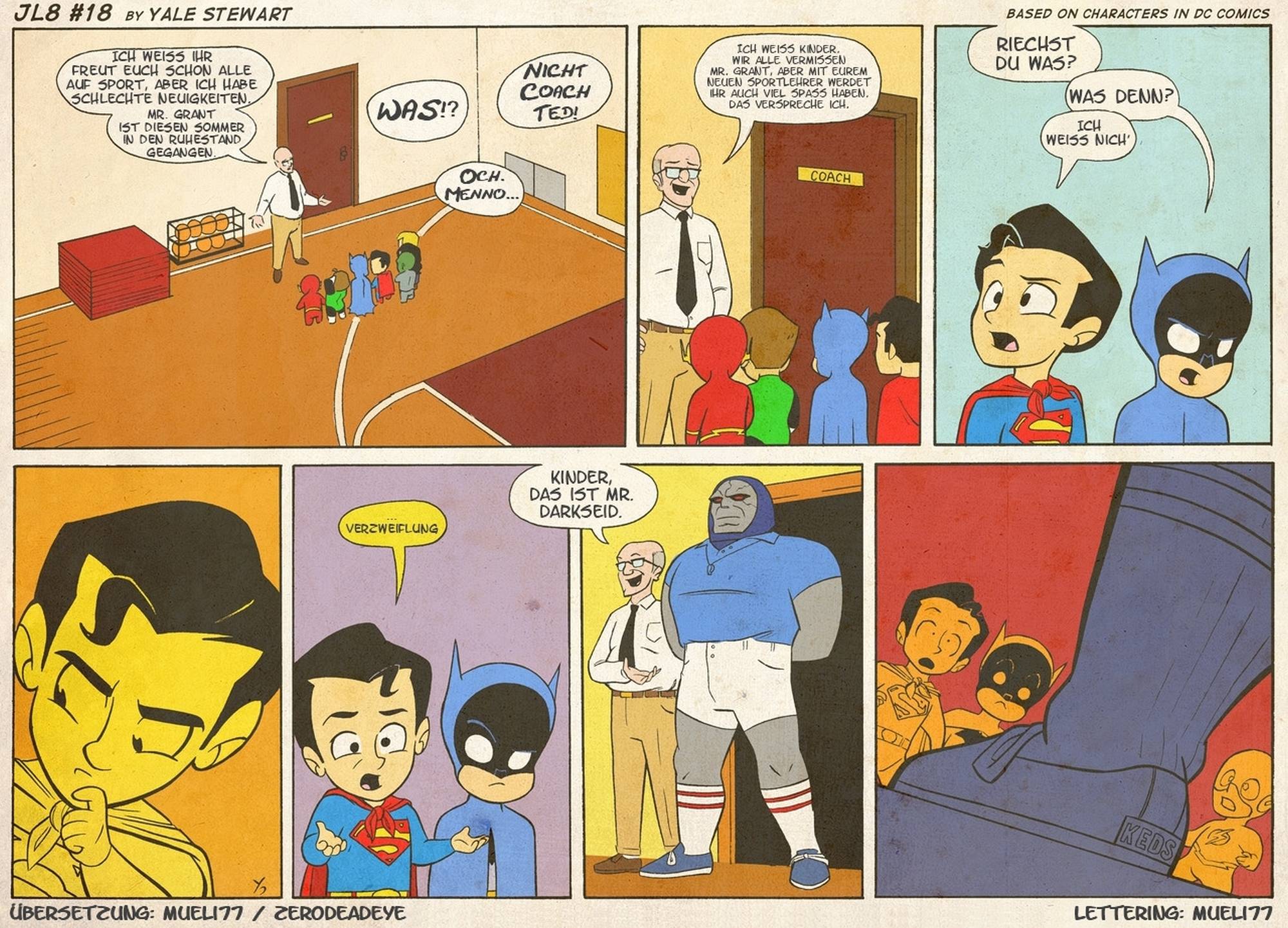 Nov 5 2012 JL8 Episode #18 Die nächste Unterrichtsstunde steht an und bringt sofort schlechte Neuigkeiten mit sich … Viel Spaß damit! (für eine größere Ansicht auf das Bild klicken) Characters © DC Comics, Creative Content © Yale Stewart. JL8 im Web: Tumblr, Facebook, Twitter © 2012 Copyright der Übersetzung by „Mueli77’s Feine Welt“. Jegliche Weiterverwendung ohne ausdrückliche Genehmigung untersagt. Bewerten:Teilen: Klicken, um auf WhatsApp zu teilen (Wird in neuem Fenster geöffnet) WhatsApp Tweet Klicken, um einem Freund einen Link per E-Mail zu senden (Wird in neuem Fenster geöffnet) E-Mail Klicken zum Ausdrucken (Wird in neuem Fenster geöffnet) Drucken Auf Tumblr teilen Klick, um auf Reddit zu teilen (Wird in neuem Fenster geöffnet) Reddit Klicken, um auf Telegram zu teilen (Wird in neuem Fenster geöffnet) Telegram Pocket Zum Teilen auf Mastodon klicken (Wird in neuem Fenster geöffnet) Mastodon Zum Teilen auf Nextdoor hier klicken (Wird in neuem Fenster geöffnet) Nextdoor Gefällt mir Wird geladen … Ähnliche Beiträge