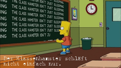 Heute noch rumbringen und dann ist endlich wieder Wochenende. Gleich frisch durchstarten mit einem neuen Simpsons-Tafelgag.