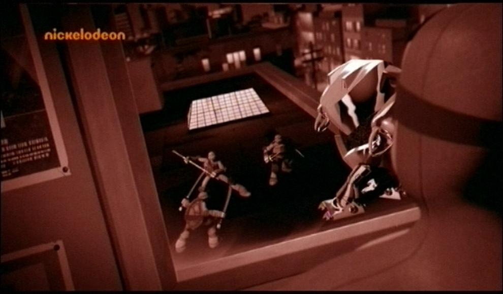 Die Turtles rasen mit dem Shellraiser durch die nächtliche Stadt. Schon wieder Nacht. Aber diesmal ist sie belebt! Und es sind keine handlungsrelevanten Figuren. Im Hintergrund laufen Menschen und fahren Autos.