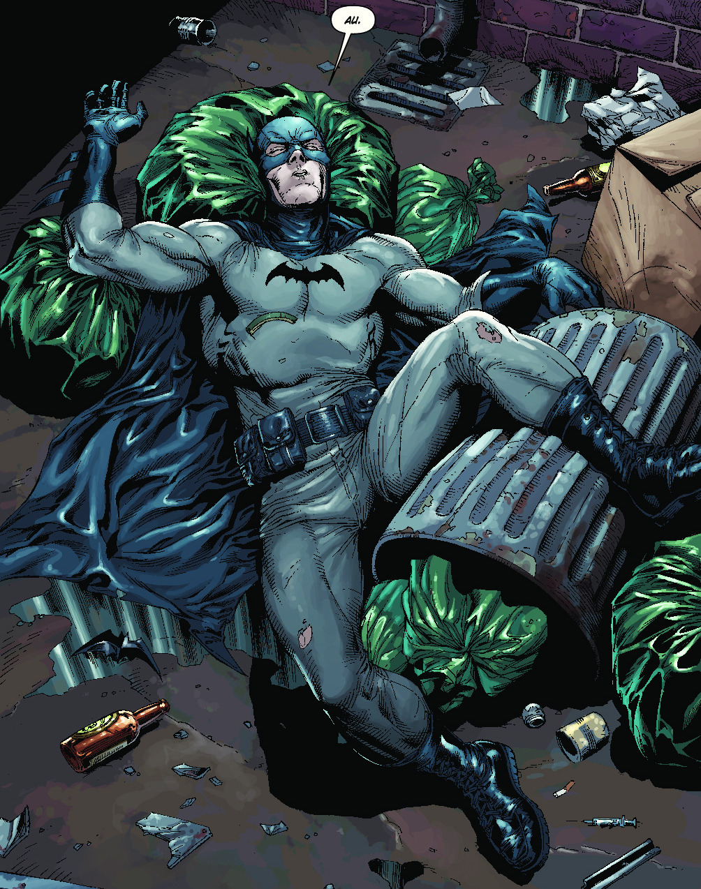 Mit Batman: Erde Eins legen Geoff Jones und Gary Frank eine Neuinterpretation des alten Fledermausmannes-Mythos vor, der mit einigen, wenn nicht sogar ganz gravierenden Veränderungen daherkommt. Nicht nur, dass Alfred kein einfacher Butler im Hause Wayne ist, der aus Familientradition die Sorge um den Erben antritt, nein er ist ein Freund und Weggefährte von Thomas Wayne. Auch der neue Polizist in der Stadt, Harvey Bullock, ist diesmal kein fetter und versoffener, mürrischer Einzelgänger, sondern ein schlanker, aktiver und dennoch nicht ganz sympathischer Schönling. Diese Änderungen sind besonders für langjährige Leser erst einmal ungewohnt, fügen sich aber sehr gut in das neue Gesamtbild ein. Dennoch werden bereits gegen Ende einige Weichen gestellt, die einem aus der früheren Origin bekannt vorkommen wird, oder aber die eine Charakterentwicklung einleiten könnte, die zu den bereits bekannten Charakteren führen kann.