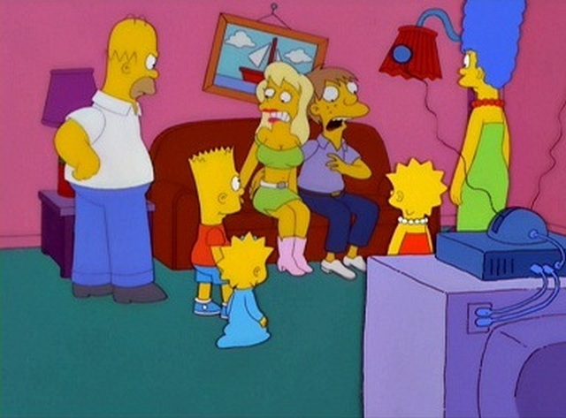 Sept 4 2013 Der tägliche Simpsons-Gag #553 Und schon ist wieder Mittwoch. Trotzdem gibt es einen neuen Simpsons-Couchgag. Viel Spaß damit! © Copyright Matt Groening & 20th Century Fox Die Familie kommt ins Wohnzimmer. Doch auf der Couch sitzt bereits der pickelige Teenager mit seiner Freundin. Bewerten:Teilen: Klicken, um auf WhatsApp zu teilen (Wird in neuem Fenster geöffnet) WhatsApp Tweet Klicken, um einem Freund einen Link per E-Mail zu senden (Wird in neuem Fenster geöffnet) E-Mail Klicken zum Ausdrucken (Wird in neuem Fenster geöffnet) Drucken Auf Tumblr teilen Klick, um auf Reddit zu teilen (Wird in neuem Fenster geöffnet) Reddit Klicken, um auf Telegram zu teilen (Wird in neuem Fenster geöffnet) Telegram Pocket Zum Teilen auf Mastodon klicken (Wird in neuem Fenster geöffnet) Mastodon Zum Teilen auf Nextdoor hier klicken (Wird in neuem Fenster geöffnet) Nextdoor Gefällt mir Wird geladen … Ähnliche Beiträge