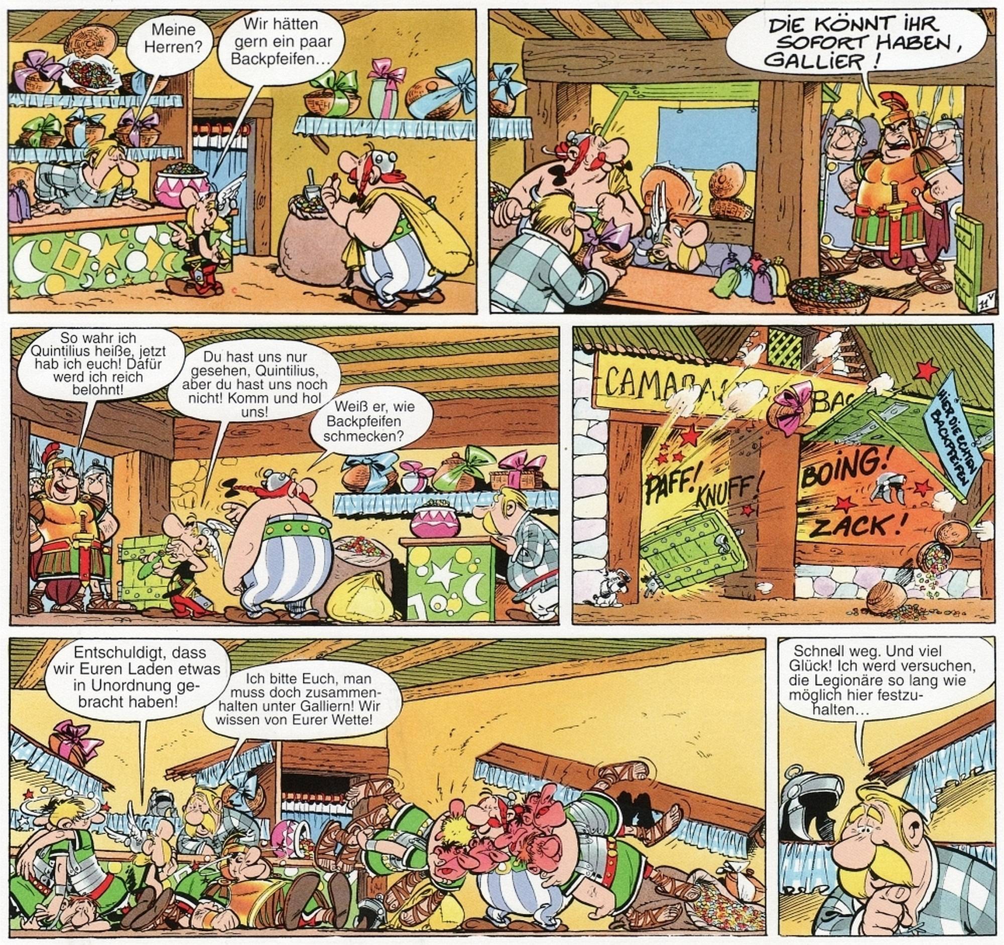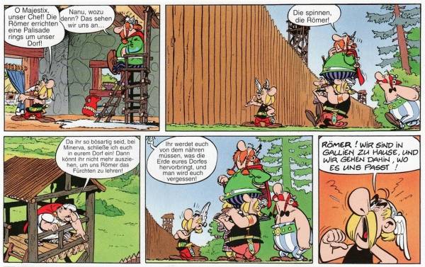 „Niemand hat die Absicht eine Mauer zu bauen.“, oder so ähnlich. Es ist schon erstaunlich wie gut Uderzo auf die damaligen Weltereignisse reagierte und das alles mit einem Augenzwinkern.