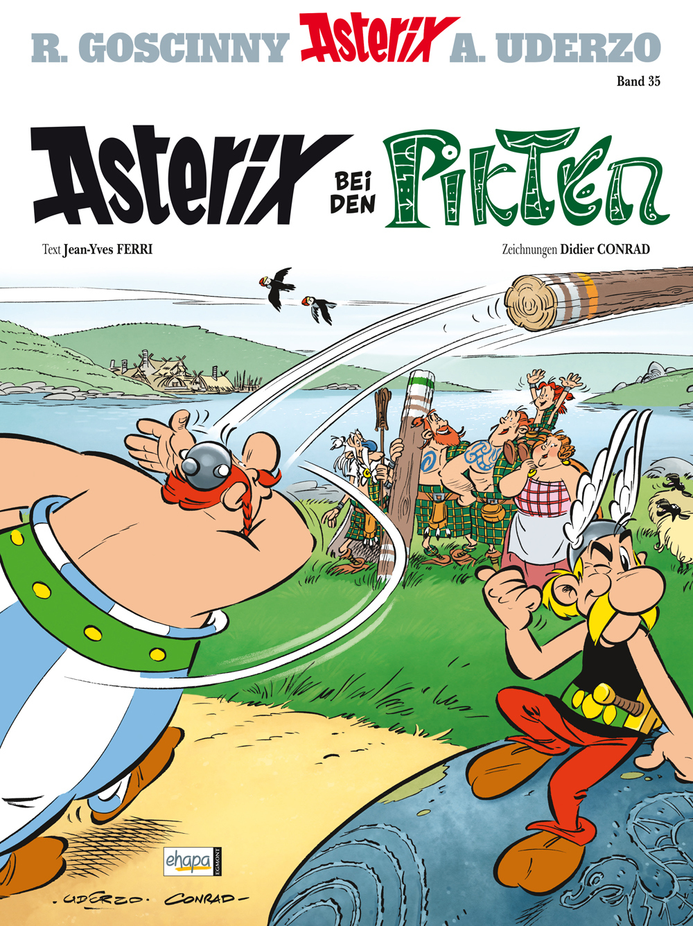 Heute Morgen war es endlich soweit. In einer feierlichen Pressekonferenz in Paris wurde das finale Cover für das neue Abenteuer enthüllt. Der 35. Band, der von René Goscinny und Albert Uderzo erdachten Gallier führt Asterix und seinen Freund Obelix in die schottischen Hochländer zum alten Volk der Pikten. Dies wird auch gleichzeitig der erste Band sein, an dem keiner der beiden geistigen Väter mehr mitwirkt. Nach dem Tod von René Goscinny im Jahre 1977 übernahm Albert Uderzo die Zügel bei Asterix. Nun gab der inzwischen 86-jährige seine beiden Kinder in die Hände von Autor Jean-Yves Ferri und Zeichner Didier Conrad.