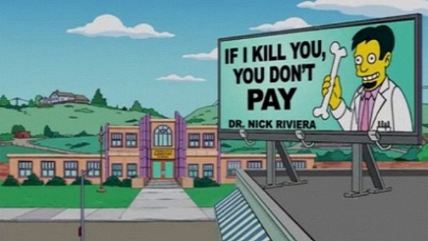 Dez 31 2013 Der tägliche Simpsons-Gag #671 Der letzte Tag des Jahres bringt den ersten Werbegag der 21. Staffel. Viel Spaß damit! © Copyright Matt Groening & 20th Century Fox „Wenn ich sie töte, müssen sie nicht zahlen – Dr. Nick Rivera“ Bewerten:Teilen: Klicken, um auf WhatsApp zu teilen (Wird in neuem Fenster geöffnet) WhatsApp Tweet Klicken, um einem Freund einen Link per E-Mail zu senden (Wird in neuem Fenster geöffnet) E-Mail Klicken zum Ausdrucken (Wird in neuem Fenster geöffnet) Drucken Auf Tumblr teilen Klick, um auf Reddit zu teilen (Wird in neuem Fenster geöffnet) Reddit Klicken, um auf Telegram zu teilen (Wird in neuem Fenster geöffnet) Telegram Pocket Zum Teilen auf Mastodon klicken (Wird in neuem Fenster geöffnet) Mastodon Zum Teilen auf Nextdoor hier klicken (Wird in neuem Fenster geöffnet) Nextdoor Gefällt mir Wird geladen … Ähnliche Beiträge