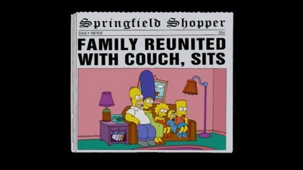 Feb 12 2014 Der tägliche Simpsons-Gag #714 Und hier ist der Couchgag der in die Episode gehört, zu der ich euch die letzten beiden Tage schon den Wolken- und Werbegag präsentiert habe. Viel Spaß damit! © Copyright Matt Groening & 20th Century Fox Die Simpsons jagen ihre Couch und werden am Schluß „wiedervereint“, was mit einem Zeitungsartikel gekrönt wird. Bewerten:Teilen: Klicken, um auf WhatsApp zu teilen (Wird in neuem Fenster geöffnet) WhatsApp Tweet Klicken, um einem Freund einen Link per E-Mail zu senden (Wird in neuem Fenster geöffnet) E-Mail Klicken zum Ausdrucken (Wird in neuem Fenster geöffnet) Drucken Auf Tumblr teilen Klick, um auf Reddit zu teilen (Wird in neuem Fenster geöffnet) Reddit Klicken, um auf Telegram zu teilen (Wird in neuem Fenster geöffnet) Telegram Pocket Zum Teilen auf Mastodon klicken (Wird in neuem Fenster geöffnet) Mastodon Zum Teilen auf Nextdoor hier klicken (Wird in neuem Fenster geöffnet) Nextdoor Gefällt mir Wird geladen … Ähnliche Beiträge
