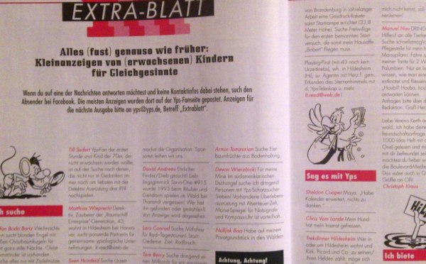Wieder nicht fehlen dürfen die Lesefotos, welche an yps@yps.de gemailt werden können. Hier dürfen Leser Bilder aus ihrer Kindheit, mit YPS-Bezug an die Redaktion senden und auf einen Abdruck hoffen.