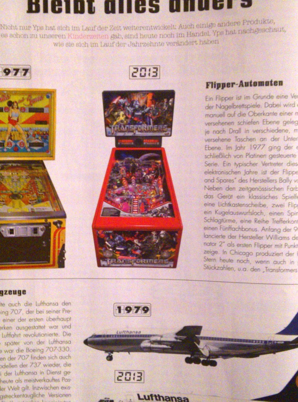 Nun geht es aber mit den „richtigen“ redaktionellen Beiträgen los. Die Rubrik „Gestern & Heute“, hat es erneut in das Heft geschafft, in der auf verschiedene Alltagsgegenstände eingegangen wird, die es sowohl damals als auch heute gab. Diesmal sind unter anderem Flipperautomaten, die Boeing 737 sowie Grundig-Fernseher und Dallas mit von der Partie.