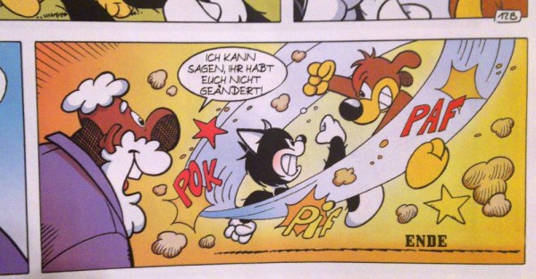Eine wirkliche Freude hingegen war das neues Abenteuer von Pif und Herkules. Mit ganzen 12 Seiten ist dieser Comic sogar wirklich umfangreich ausgefallen. Dazu kommt noch eine 6-seitige Geschichte der Gespenster GmbH aus YPS Nr. 1179, sowie 9 Seiten aus Thomas der Trommler aus YPS Nr. 132, welcher inzwischen gesammelt in einem Band bei Cross Cult erschienen ist. Der Comic mit Yps, Kaspar, Patsch und Willie zum Gimmick darf natürlich auch nicht fehlen, in dem Kaspar den Umgang mit der „Maschine die viereckige Eier macht“ erst noch lernen muss.