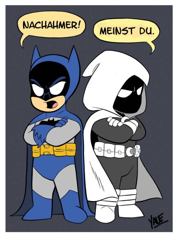 Mär 10 2014 JL8 Special #4 Im heutigen JL8 Special gibt es ein DC vs. Marvel Crossover. Denn Batman stellt Moon Knight zur Rede. Viel Spaß damit! (für eine größere Ansicht auf das Bild klicken) Characters © DC Comics / Marvel & Subs., Creative Content © Yale Stewart. (Fortsetzung folgt…) JL8 und Yale Stewart im Web: Tumblr, Facebook, Twitter © Copyright der verwendeten Figuren bei DC Comics / Marvel & Subs., des kreativen Inhaltes bei Yale Stewart. Bewerten:Teilen: Auf WhatsApp teilen (Wird in neuem Fenster geöffnet) WhatsApp Tweet Einen Link per E-Mail an einen Freund senden (Wird in neuem Fenster geöffnet) E-Mail Drucken (Wird in neuem Fenster geöffnet) Drucken Auf Tumblr teilen Auf Reddit teilen (Wird in neuem Fenster geöffnet) Reddit Auf Telegram teilen (Wird in neuem Fenster geöffnet) Telegram Pocket Auf Mastodon teilen (Wird in neuem Fenster geöffnet) Mastodon Auf Nextdoor teilen (Wird in neuem Fenster geöffnet) Nextdoor Gefällt mir Wird geladen … Ähnliche Beiträge