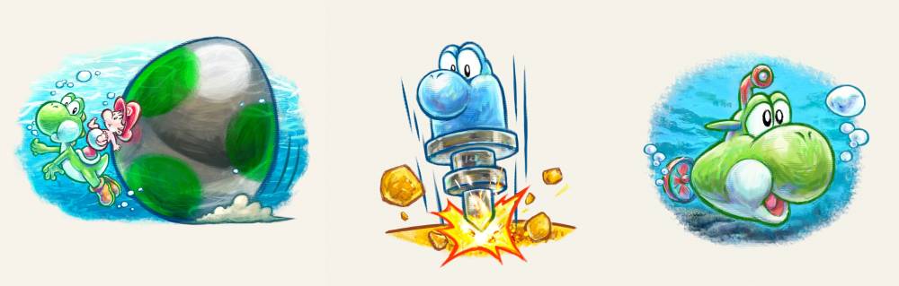Doch womit will es dann überzeugen, wenn alles nur genauso ist, wie es immer war? Ganz so einfach macht es sich Nintendo nicht. Ein paar Neuerungen gibt es dennoch. Zwei der neuen Ideen beziehen sich auf die Eier. Mega-Eier sind wesentlich größer, als die normalen Eier und haben eine dementsprechend höhere Durchschlagskraft. Yoshi kann sie wie alle anderen Eier auch in alle Richtungen werfen. Nicht so bei den Metall-Eiern. Weil diese so schwer sind, kann Yoshi sie nur waagerecht werfen, oder besser gesagt rollen. Dafür sind sie mit ihrem Gewicht eine große Hilfe unter Wasser, um an Stellen zu kommen, die sonst unerreichbar wären. Und noch etwas soll das Gameplay ein wenig auflockern. An einigen Stellen trifft Yoshi auf sogenannte Yoshi-Doubles. Diese ahmen Yoshis Bewegungen nach und müssen daher auf ganz geschickte Art und Weise ausgeschaltet werden.