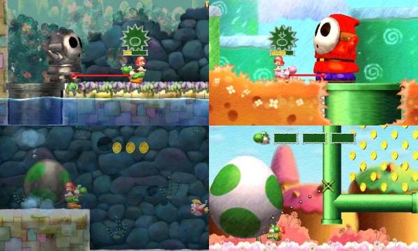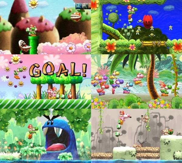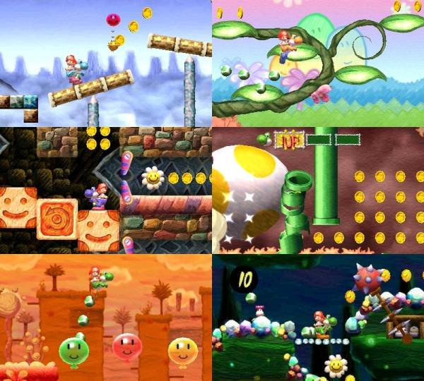 Seinen ersten Auftritt hatte der knuddelige Saurier und inzwischen treue Wegbegleiter von Mario aber 1990 in „Super Mario World“ auf dem Super Nintendo als Marios Sidekick, bevor er in „Super Mario World 2: Yoshi’s Island“ seine erste Hauptrolle bekam. Danach folgten viele Gastauftritte, u.a. in Puzzlespielen, in denen Yoshi auch mal die Hauptrolle spielte. Das nächste Jump’n’Run mit Yoshi war dann das im direkten Vergleich eher mäßige, aber dennoch niedliche „Yoshi’s Story“ auf dem Nintendo 64. Außerdem wurden die beiden „Super Mario World“-Teile als Remake (auch mit erweitertem Levelumfang) auf dem Gameboy Advance und dem Nintendo DS Re-Released, bevor mit „Yoshi’s Island DS“ ein erster Nachfolger erschien. Neue Geschichte, neue Gegner, aber inhaltlich trotzdem sehr ähnlich dem Original, konnte das Spiel überzeugen. Dennoch wirkte vieles an dem Game nur wie eine „aufgebohrte“ Version des Klassikers, auch wenn mit den Baby-Münzen, den Marioblöcken und einigen neuen Gegnern frische Elemente mit an Bord waren.