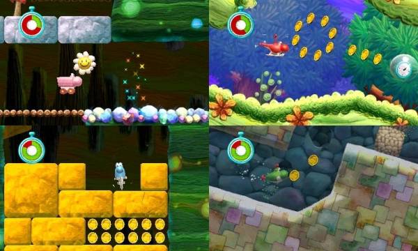 Die größte Frage bei einem klassischen Sidescrolling Jump’n’Run ist natürlich, ob ein 3D-Effekt wie ihn der 3DS bietet überhaupt notwendig ist. Die klare Antwort lautet: Nein. Notwendig ist er nicht, aber es sieht einfach wunderschön aus, und die detaillierten und wunderschön animierten Figuren sehen so noch plastischer aus. Auch die Hintergründe wirken durch die räumliche Tiefe und das parallaxe Scrolling (sprich Scrolling auf mehreren Tiefenebenen) sieht dadurch auch wesentlich besser aus. Der 3D-Effekt ist also mehr als ein Bonus zu verstehen, der das Spiel aber optisch ungemein bereichert.