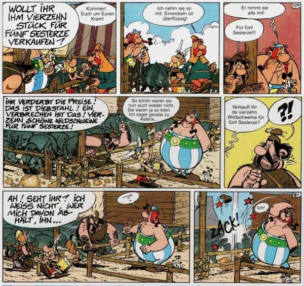 Asterix erlernt die Grundlagen zur Destabilisierung der Wirtschaft. Einfach alle anderen unterbieten.