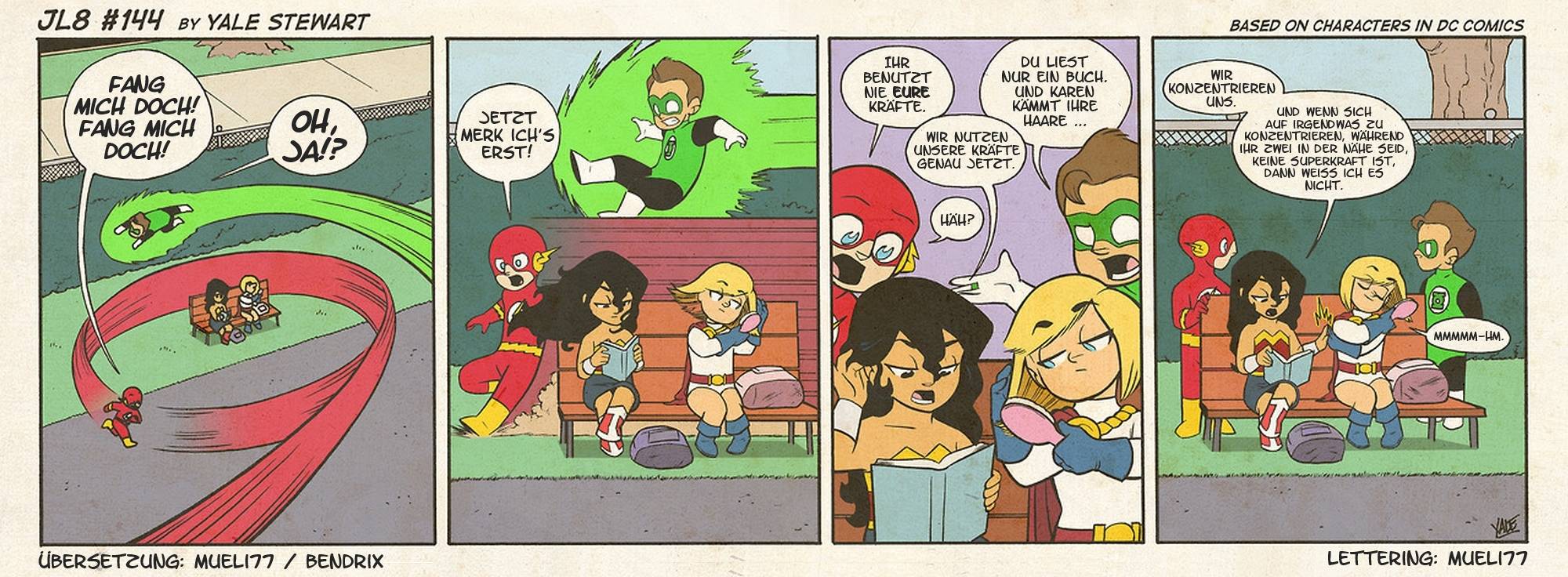 Mai 1 2014 JL8 Episode #144 Superkräfte können vielfältig sein … Viel Spaß damit! Characters © DC Comics, Creative Content © Yale Stewart. (für eine größere Ansicht auf das Bild klicken) (Fortsetzung folgt…) JL8 im Web: Tumblr, Facebook, Twitter © 2014 Copyright der Übersetzung by „Mueli77’s Feine Welt“. Jegliche Weiterverwendung ohne ausdrückliche Genehmigung untersagt. Bewerten:Teilen: Klicken, um auf WhatsApp zu teilen (Wird in neuem Fenster geöffnet) WhatsApp Tweet Klicken, um einem Freund einen Link per E-Mail zu senden (Wird in neuem Fenster geöffnet) E-Mail Klicken zum Ausdrucken (Wird in neuem Fenster geöffnet) Drucken Auf Tumblr teilen Klick, um auf Reddit zu teilen (Wird in neuem Fenster geöffnet) Reddit Klicken, um auf Telegram zu teilen (Wird in neuem Fenster geöffnet) Telegram Pocket Zum Teilen auf Mastodon klicken (Wird in neuem Fenster geöffnet) Mastodon Zum Teilen auf Nextdoor hier klicken (Wird in neuem Fenster geöffnet) Nextdoor Gefällt mir Wird geladen … Ähnliche Beiträge