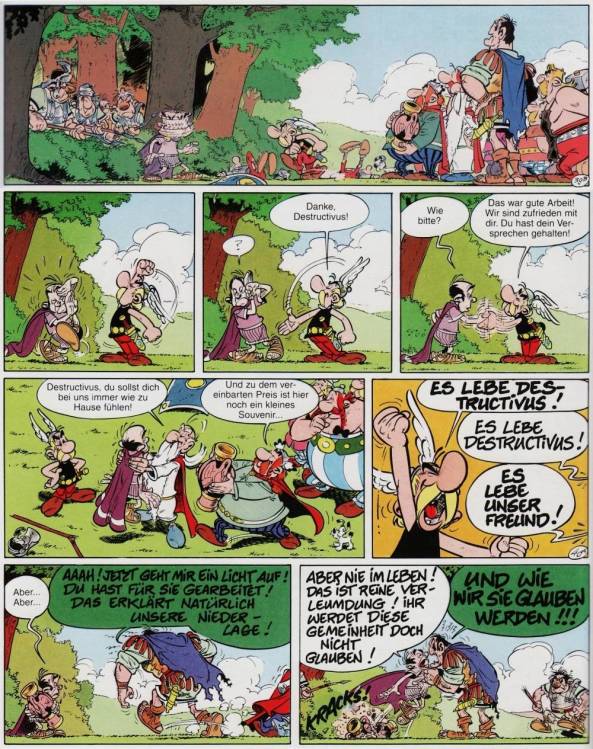 „Streit um Asterix“ gehört in meinen Augen mit zu den besten Asterix-Abenteuern. Nicht nur weil die Thematik noch immer aktuell ist, sondern weil neben den ganzen vielen kleinen Anspielungen vor allem das Verhalten von Destrucivus so faszinierend ist. Dass am Ende trotzdem wieder alles beim Alten ist und der Status Quo unverändert bleibt, ist einfach Gewohnheit und nimmt dem Abenteuer kein Bisschen an Spannung und Glaubwürdigkeit.