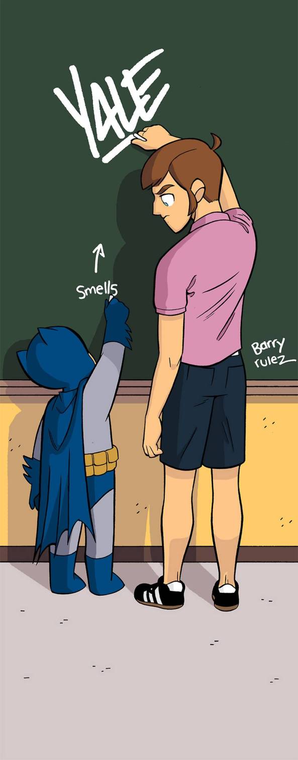 So viele Bilder gab es inzwischen von Yale zu bestaunen. Diesmal gibt es ein Selbstporträt mit Batman. Wie immer scheut sich Yale dabei nicht, auch sich selbst auf den Arm zu nehmen.