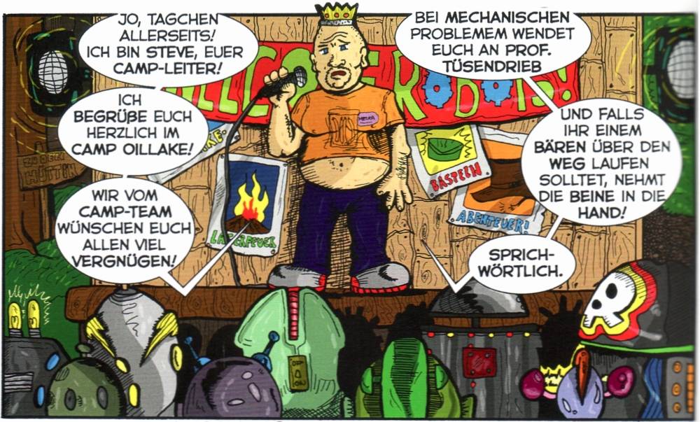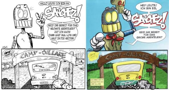 Über die Geschichte gibt es eigentlich nicht viel zu sagen, wenn man denn schon die ursprüngliche Fassung kennt. Doch es soll ja tatsächlich noch Leute geben, welche die erste Auflage nicht ihr eigen nennen. Inhaltlich ist die Geschichte eher bei den Funnies einzuordnen und reiht sich bei Serienkollegen wie den Simpsons Comics sehr gut ein. Lockere und witzige Abenteuer, die für viel kurzweil und Spaß sorgen sind der Kern von Sanchez Adventures. So richtig Leben kommt jedoch erst auf, wenn man sowohl die Macher und deren Spielwiese, das Paniniforum, auch kennt. Denn es werden hier und da kleine Insidergags eingestreut, die man nur erkennt, wenn man eben die oben erwähnten Voraussetzungen erfüllt. Aber auch so kann man an dem Heft viel Spaß haben.