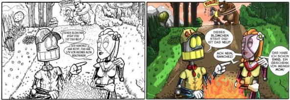 Die Geschichte geht nahtlos weiter und auch wer bereits die erste Fassung besitzt sollte bei dieser Ausgabe zugreifen. Nicht nur, dass sie ein besseres Gesamtbild ergibt, zusammen mit den anderen Heften, auch wurden einige Fehlerchen ausgemerzt und der gesamte Lesefluss erleichtert. An vielen Stellen erleichtert die Koloration die Übersicht, allerdings gibt es auch Panels, bei denen einige der vorherigen Details verloren gegangen sind. Insgesamt jedoch ist die Neuauflage mit schöner Farbgebung eine Aufwertung der ersten Ausgabe.