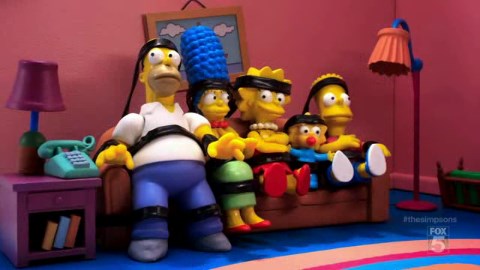 Die Simpsons sind an die Couch gefesselt.