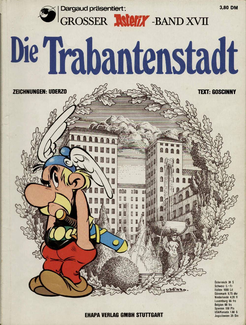 Unter dem Titel „Die Trabantenstadt“ gelangte die Geschichte erstmals in MV Comix Nummer 18 von 1971 zum Vorabdruck und lief bis Ausgabe 5 von 1972. Doch anders als Dargaud entschied man sich beim Stuttgarter Ehapa Verlag damals das Album nicht schon 1972 zu veröffentlichen, sondern brachte es erst als Großer Asterix-Band XVII 1974 in die Läden.