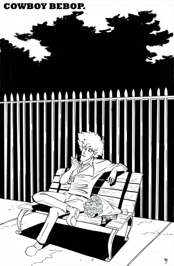 Das heutige JL8 Special führt wieder in die Manga-Ecke. Diesmal hat sich Yale der Serie Cowboy Bebop angenommen und dieses Bild geschaffen, was er mit „The real Folk Blues“ betitelt hat.