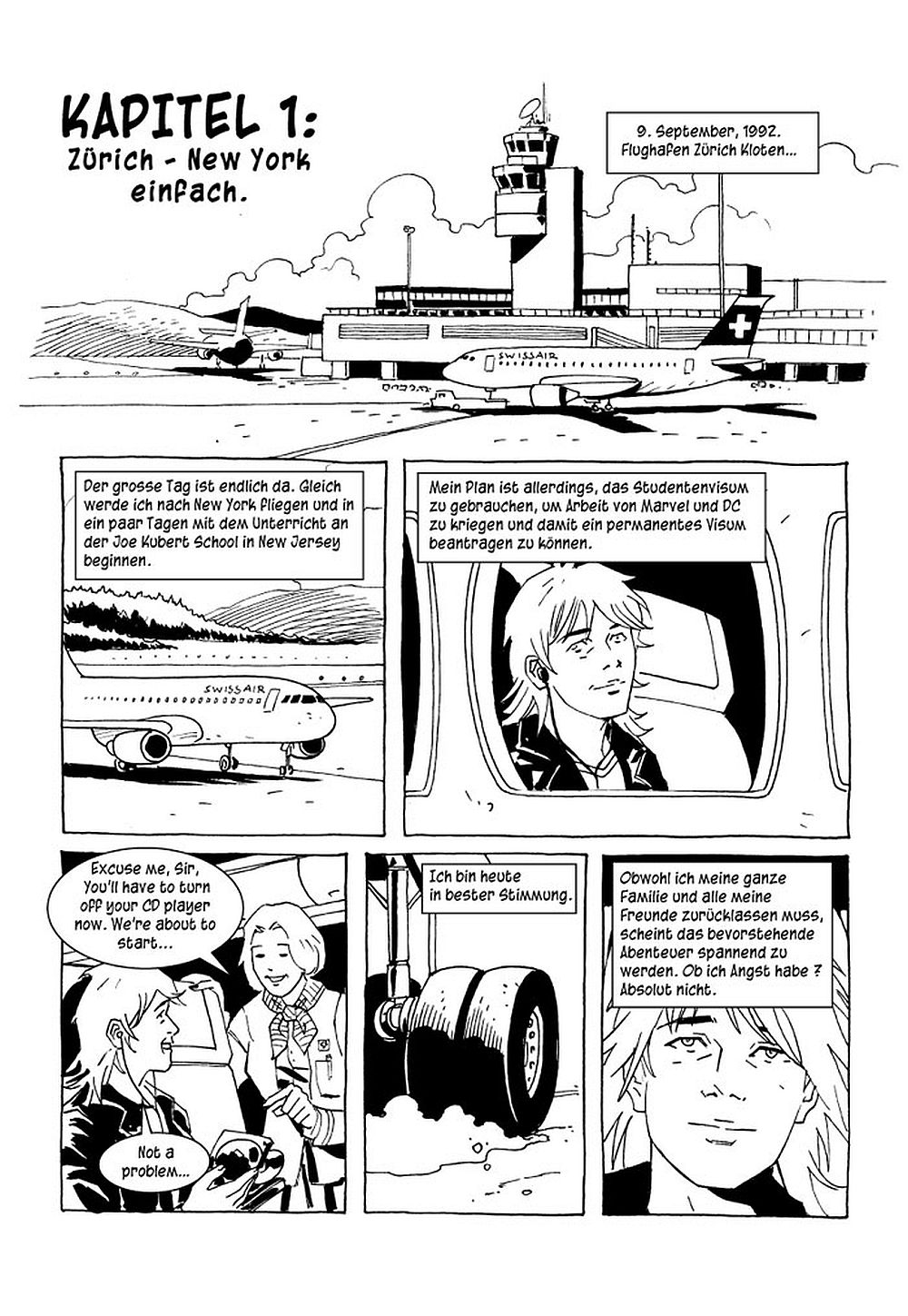 1992 wanderte der Schweizer David Boller nach Amerika aus, um professionell Comics zu zeichnen. Ein einfaches Ziel entfaltete sich in ein sechzehn Jahre langes Abenteuer, bevölkert von exzentrischen Figuren und begleitet von Triumphen und Niederlagen, die sein Leben nachhaltig beeinflusst haben. David erzählt von seinen Erfahrungen in der amerikanischen Comic-Industrie, wie er seine Frau Rachel, Tochter eines bekannten Malers, kennenlernt und er ihr schlussendlich das Leben rettet.