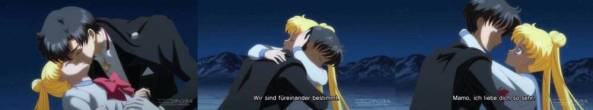 Nach dem Kampf liegen sich Mamoru und Usagi in den Armen …
