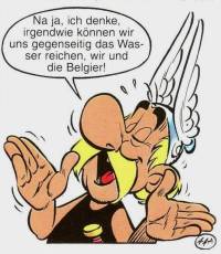 Des Weiteren lässt es sich Goscinny nicht nehmen auf die lukullischen Eigenheiten der Belgier einzugehen. Allen voran die bekannten Pommes frites mit Muscheln (Moules et frites) und dem Nationalgetränk der Belgier, dem Bier. Aber auch die Zweisprachigkeit im Land, mit Französisch und Niederländisch, und die heimliche Rivalität zwischen den Wallonen und Flamen wird durch die beiden Figuren Stellartoix und Egmontix thematisiert.