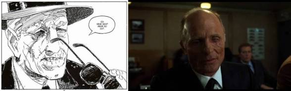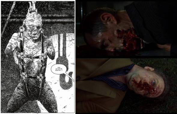 David Cronenberg liefert keine wirkliche Adaption des Comics ab, sondern kreiert seine eigene „Gewaltballade“. Mit eindringlichen und sehr dunklen Bildern erzählt er Toms Geschichte gänzlich anders. Cronenbergs Fokus liegt auf der Familie und nicht auf Toms Leben und wie er mit der Situation klarkommt. Andererseits ist John Wagners Graphic Novel auch sehr schwer umzusetzen, wenn man sich ganz streng an die Vorlage halten will. Nicht etwa wegen des Inhaltes an sich, sondern eher wegen der doch beschränkteren Stilmittel und der komplett anderen Erzählstruktur, die einem das Medium Film bietet. Dinge die im Comic funktionieren und auch gut aussehen, können auf der Leinwand unglaubwürdig, lächerlich oder übertrieben überzogen wirken. Zwar wurden ein paar Elemente aus dem Comic übernommen, dafür aber anders arrangiert. So gibt es am Anfang die Szene mit den zwei Räubern, welche im Film keine Anhalter ausrauben sondern die Besitzer eines Motels ermorden und auch deren Tochter. Dieses Mädchen mit seiner Puppe kommt auch im Comic vor, allerdings ist sie dort die Tochter eines Kunden in Toms Bistro und wird auch nicht ermordet.