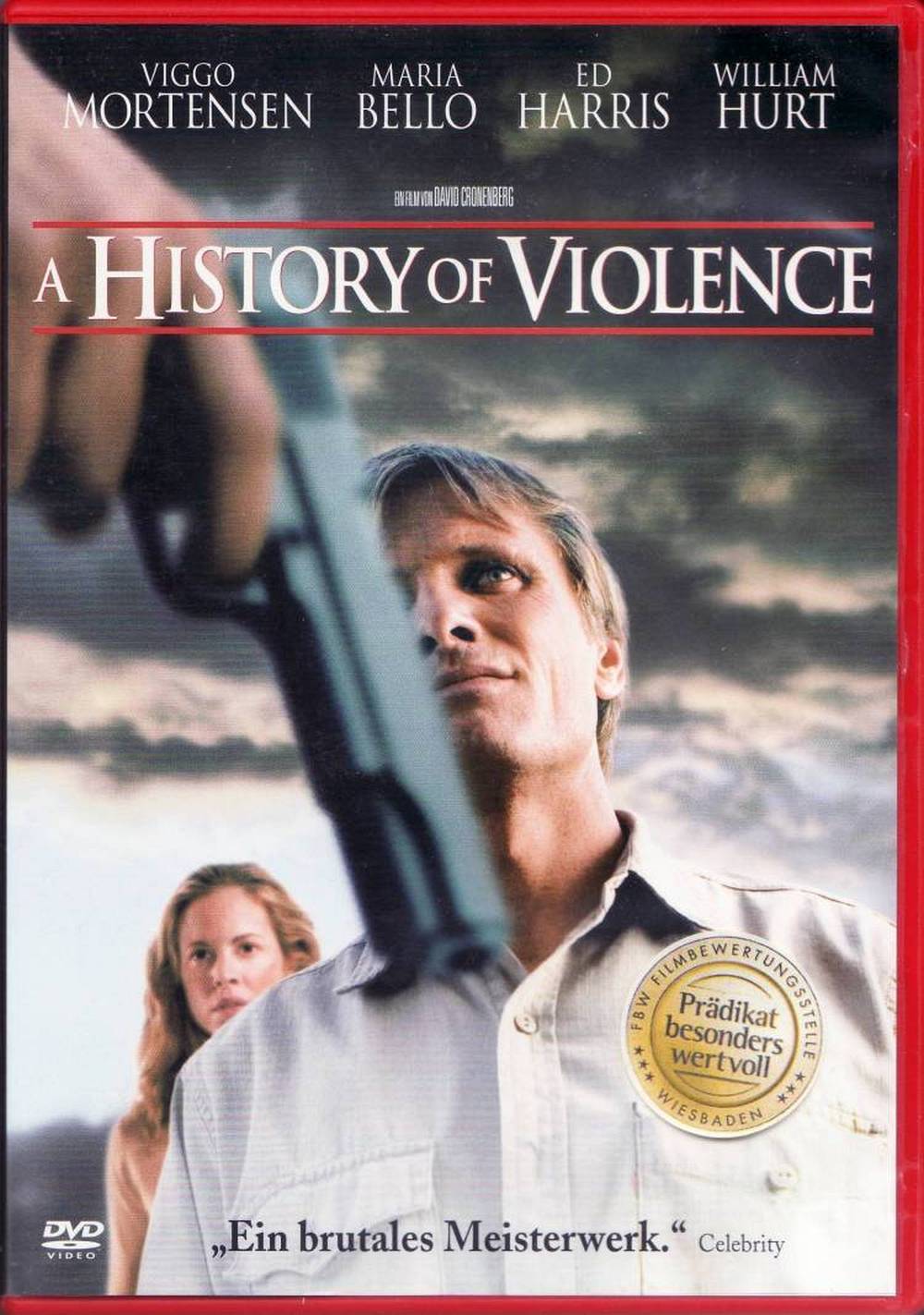 Trotz allem liefern gerade Viggo Mortensen (Tom Stall) und Maria Bello (Edie Stall) sehr gute schauspielerische Leistungen ab. Aber auch William Hurt (Richie Cusack) und Ed Harris (Carl Fogarty) wissen zu überzeugen. Selbst einige der massiven Gewaltdarstellungen schafften es in den Film, wobei auch hier Abstriche gemacht werden mussten, da manches doch sehr exzessiv wäre, was den Film dennoch nicht vor einer FSK 18 rettet. Allerdings wirkt mir diese Einstufung doch ein wenig übertrieben, wenn ich Filme wie 300 oder Sin City als Vergleich heranziehe. Da fällt „A History of Violence“ wesentlich „harmloser“ aus. Und dann gibt es da noch die Behauptung, dass nur die DVD in Deutschland ungeschnitten ist, weil die hierzulande veröffentlichte Bluray auf der US Rated-R Fassung basieren soll. Allerdings sind diese Unterschiede so minimal, dass sie kaum auffallen, und äußern sich auch nicht in einer anderen Laufzeit, da keine Szenen entfernt, sondern nur Bluteffekte digital reduziert wurden.