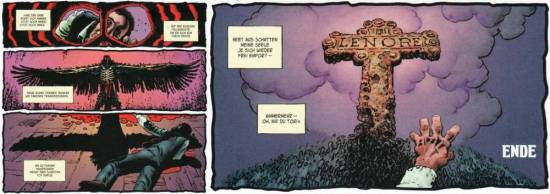 Leider fällt der Preis mit knappen 30 Euro nicht gerade gering aus. Zwar bekommt man ein sehr gut verarbeitetes Hardcover mit solider Bindung und stabilen Seiten in matter Optik, aber der Bonusteil fällt mit einer Covergalerie die gerade einmal aus fünf Bildern besteht eher dünn aus. Nicht einmal an Kurzbiografien von Edgar Allan Poe oder Richard Corben wurde gedacht. Zwar gibt es eine kurze Auflistung mit Werken von und über Richard Corben, aber auch dies kann man nicht wirklich als Bonus bezeichnen. Da wäre in meinen Augen mehr möglich und für „Neuleser“ auch notwendig gewesen.