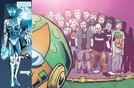 Zeichnerisch hat sich in meinen Augen, auch zum Glück, nur wenig getan. Keine Stiländerungen, sondern lediglich ein etwas sicherer Strich sind auszumachen. Dadurch haben sämtliche Figuren aus dem ersten Heft und den Metahuman$ einen großen Wiedererkennungswert, und auch die bereits in Heft 1 vorhandenen Doppelsplashpages sind hier erneut und mehrfach vertreten. Gerade diese sind für mich, auch wegen der vielen Details eine wahre Augenweide und bergen so manches Geheimnis im Hintergrund. Nicht nur was wichtige Handlungselemente betrifft, sondern auch kleine Easter Eggs und Cameos, wie die der Plem Plem Crew. Einziges Manko für meinen Geschmack ist die manchmal etwas zu grellbunte Farbgebung. Hier wären für mich persönlich etwas gedecktere Farben hier und da angebracht gewesen. Gerade die Zeitebene in Mexiko, Mitte der 70er Jahre, würde mit einem Filter mit etwas blasseren Farben und nur gelegentlichen kraftvollen Farbakzenten stimmungsvoller wirken. Aber wenn ich ehrlich bin, ist das auch schon meckern auf hohem Niveau.