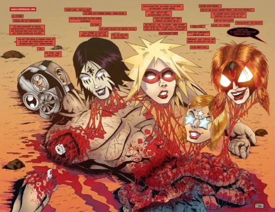 Trotz dieser Ansätze ist Riot keine hochgelobte Graphic Novel, hat keinen wirklichen tieferen Sinn und versucht nicht, mit einer Moral daherzukommen. Es will unterhalten und das mit brachialer Action, mit viel Blut, zerfetzten und toten Körpern und derben Humor. Und dennoch gibt es, wenn man genauer hinsieht, einiges zu entdecken. Inhaltliche Parallelen, wie es bei Spawn mit seinem Mentor Cogliostro der Fall war, der wiederum optisch ein wenig an Darkman erinnert, oder ein Schurke der an den wirklich üblen Zapp-Superman erinnert. Und dann wäre da noch der interaktive Aspekt des Heftes, den ich sehr gelungen finde. Denn Marc Blinn hat QR-Codes eingebaut mit denen man (Smartphone mit QR-Reader vorausgesetzt) Videos auf Youtube ansehen kann. Diese sind durchaus unterhaltsam und passen irgendwie auch sehr gut zu dem schrägen Humor von Riot. Allerdings werde ich hier weder verraten, welche Videos dies sind, noch diese verlinken. Wer es wirklich selber wissen möchte, der muss sich das Heft zulegen und selbst nachschauen.