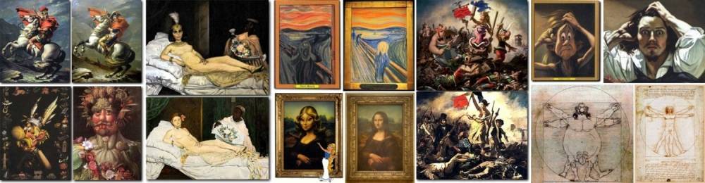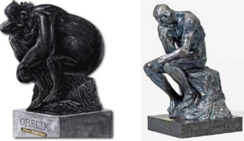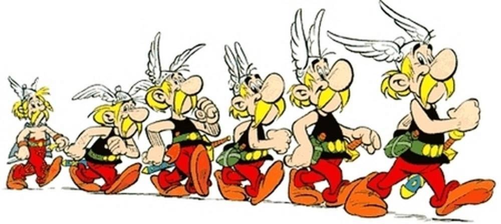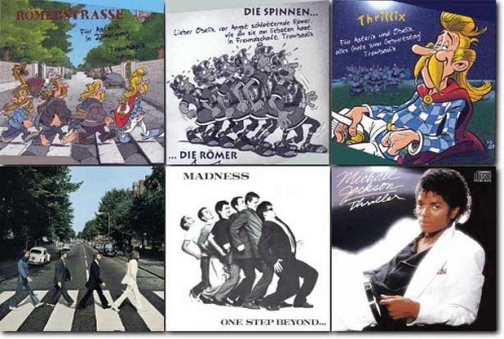 Im ganzen Band sind außerdem eine Menge an Anspielungen, Hommagen und Gastauftritten versteckt, die ich hier noch kurz erwähnen möchte. Neben Uderzo, der sich selbst verewigt hat, darf auch das Marsupilami nicht fehlen, selbst wenn es einen Asterix-Kopf trägt. Bubba findet sich auf einem Schiff namens Titanix wieder und erinnert in seiner Pose an den Kinoerfolg „Titanic“ von James Cameron. Selbst Plattencover wie von den Beatles, Madness und Michael Jackson finden ihre Erwähnung. Einige Gemälde wurden ebenfalls gallisch interpretiert, wie Da Vincis „Der vitruvianische Mensch“ und die „Mona Lisa“, Eugène Delacroix‘ „Die Freiheit führt das Volk“, eine Bildfolge im Stil von Andy Warhole, „Der Schrei“ von Edvard Munch, „Le Désespéré“ von Gustave Courbet, „Vertumnus“ von Giuseppe Arcimboldo, Kleopatra in der Pose von „Olympia“ von Édouard Manet, sowie Cäsar als Napoleon in „Bonaparte beim Überschreiten der Alpen am Großen Sankt Bernhard“ von Jacques-Louis David und auch Skulpturen wie Auguste Rodins „Der Denker“.