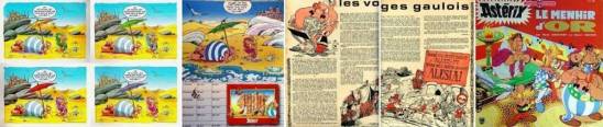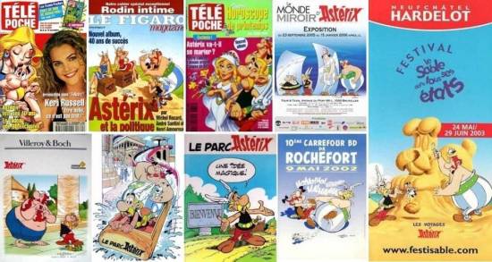 Zwei Seiten weiter sind Skizzen, Entwürfe und Promotionbilder zum Asterixpark zu sehen, die teilweise ihre Veröffentlichung im 1986 in Frankreich erschienenen Sonderband „Le Parc Astérix – Une idée magique!“ erfuhren. Außerdem wurden einige Panels, zumindest die Grundlage hierfür, 1969 für ein „programme du gala des artistes“ erstellt und andere bereits in der zum 34. Band begleitenden Ausstellung „Le monde miroir d’Asterix“ verwendet. Aber auch Illustrationen, wie zum Beispiel für das Spiel „La danse des Gaulois“ (die französische Variante von Twister), sowie Verfremdungen von Pilote-Werbeanzeigen fanden so den Weg in diesen Band. Denen folgen wiederum Zeichnungen von Pilote Titelbildern, Glückwunschkarten und sogar Plakate, wie für das 2002 stattgefundene „Festivals du Rire de Rochefort“. Außerdem kommen wieder Bilder zum Einsatz, die möglicherweise im Zusammenhang mit den von 1974 bis 1978 existierenden „Studio Idéfix“ zusammenhängen, wobei dies nicht bewiesen ist.
