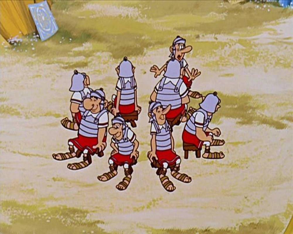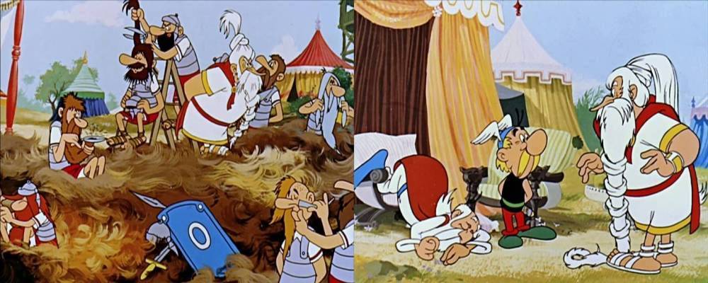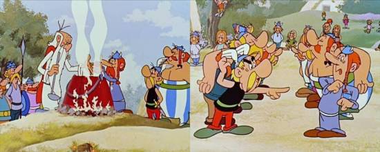 Als kleine Anmerkung sei jetzt noch zum Schluss erwähnt, bevor ich nun zum eigentlichen Review komme, dass der Film auf DVD, im TV und sogar auf Blu-ray statt der ursprünglichen 70 Minuten nur eine Laufzeit von 65 Minuten aufweist. Dennoch ist der Film nicht gekürzt. Es liegt lediglich an der Umwandlung (auch Pal-Beschleunigung genannt) von den eigentlichen 24 Bildern pro Sekunde, wie sie im Kino angewandt werden auf die 25 Bilder je Sekunde für PAL-TV und DVDs. Fraglich bleibt aber dennoch, warum auch die Blu-ray davon betroffen ist, da diese auch mit 24 Bildern je Sekunde klarkommt. Vermutlich liegt es daran, dass für die Aufarbeitung ein bereits angepasstes PAL-Master verwendet wurde. Aber das ist nur eine Mutmaßung meinerseits, da mir für dieses Review „nur“ die digital überarbeitete Fassung von Studiocanal aus der „Die grosse Asterix Edition“-Box vorliegt.