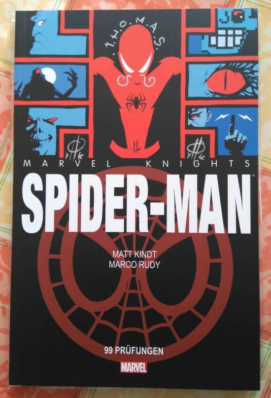 So sieht mein Marvel Knights: Spider-Man-Band jetzt aus. Mit Namenszug, kleinen Verschönerungen und zwei Signaturen