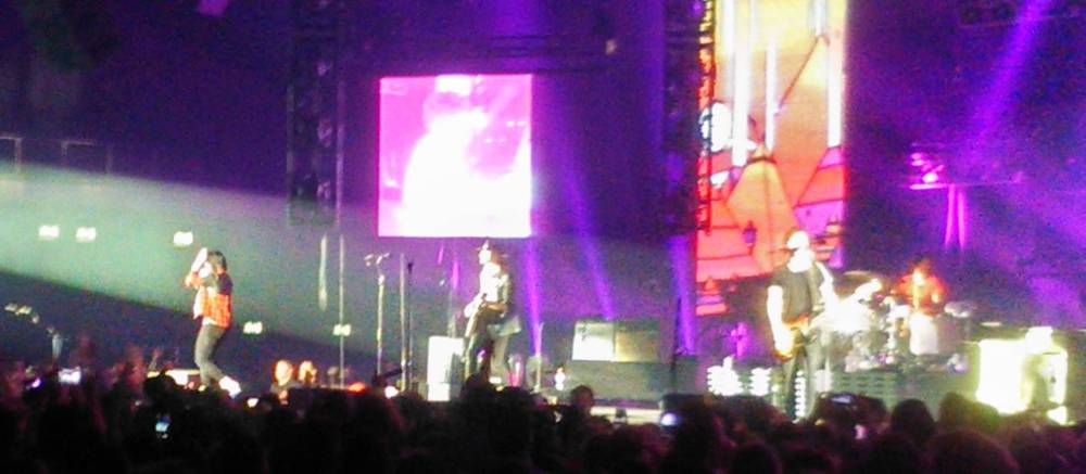Ich muss bei dieser Aktion ziemlich hilflos ausgesehen haben, denn schon bald kam eine Frau auf mich zu und bat mir und meiner Tochter zwei Sitzplätze an, da ihre Begleiterinnen sich im Saal bei der Menge und in der Nähe der Bühne tummelten. So konnten wir beide das restliche Konzert von den Rängen aus verfolgen, wobei auch einige der schönen Bilder und Videos entstanden.