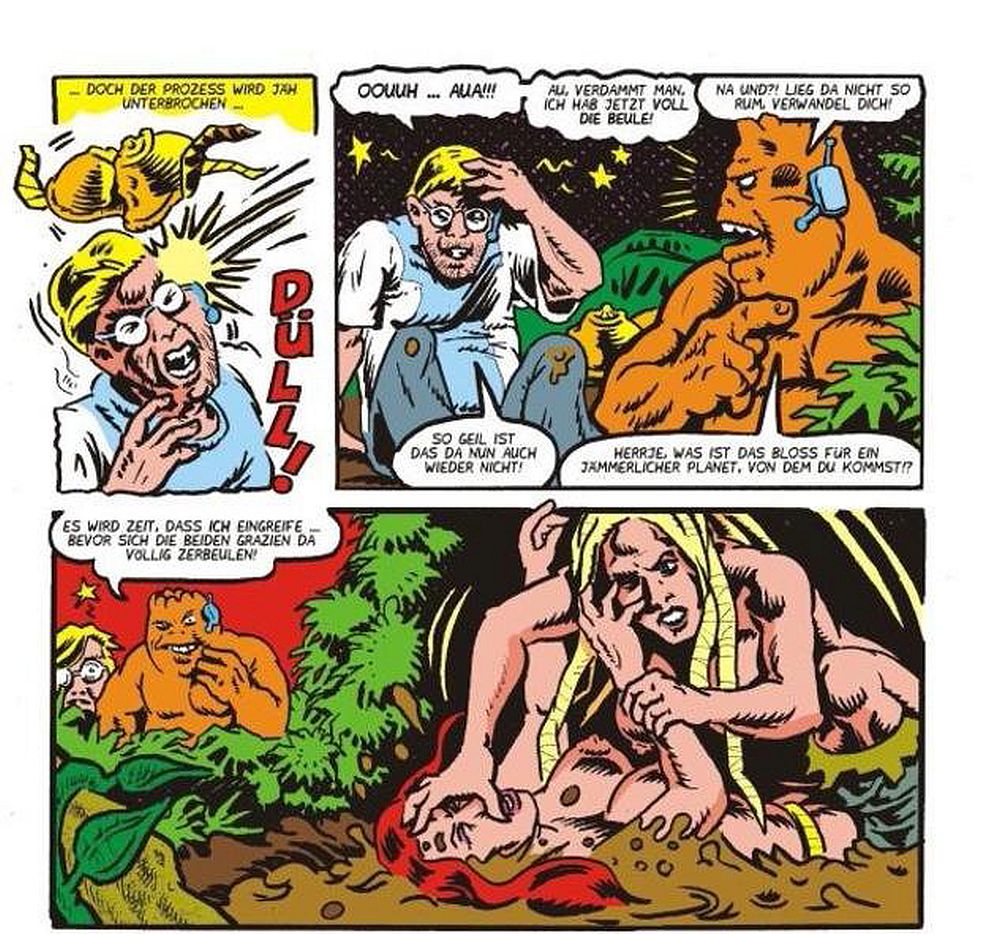 Anspielungen auf beide Heftserien findet der Weissblech-Kenner immer wieder vereinzelt eingestreut in die Geschichte. Das ist etwas, was mit Sicherheit das Herz eines Weissblech Kala und Bella Star Fans höher schlagen lässt. Mitunter gibt es in diesem Sinne auch leichte Querverweise auf die berüchtigten XXX-Comics ;).