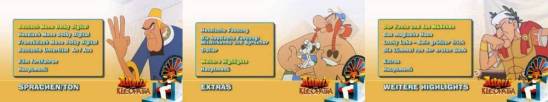 Auch der Ton liegt wieder „nur“ in Dolby Digital Mono vor. Anders als im Review zu „Asterix, der Gallier, werde ich dieses Mal allerdings die einzelnen Sprachfassungen nicht getrennt vorstellen. Neben der ursprünglichen deutschen Sprachfassung gibt es wieder das französische Original sowie eine hessische Fassung, die aber wieder mehr als Extra, als als wirkliche Sprachversion zu verstehen ist. Denn vorrangig wurden auch hier nur die Hauptfiguren mit einem hessischen Dialekt ausgestattet. In allen drei Versionen ist der Ton deutlich. Es gibt keine Schwankungen in der Lautstärke und die Sprache wird zu keiner Zeit von Musik oder Geräuscheffekten überlagert, was bei vielen 5.1-Spuren leider immer wieder der Fall ist.
