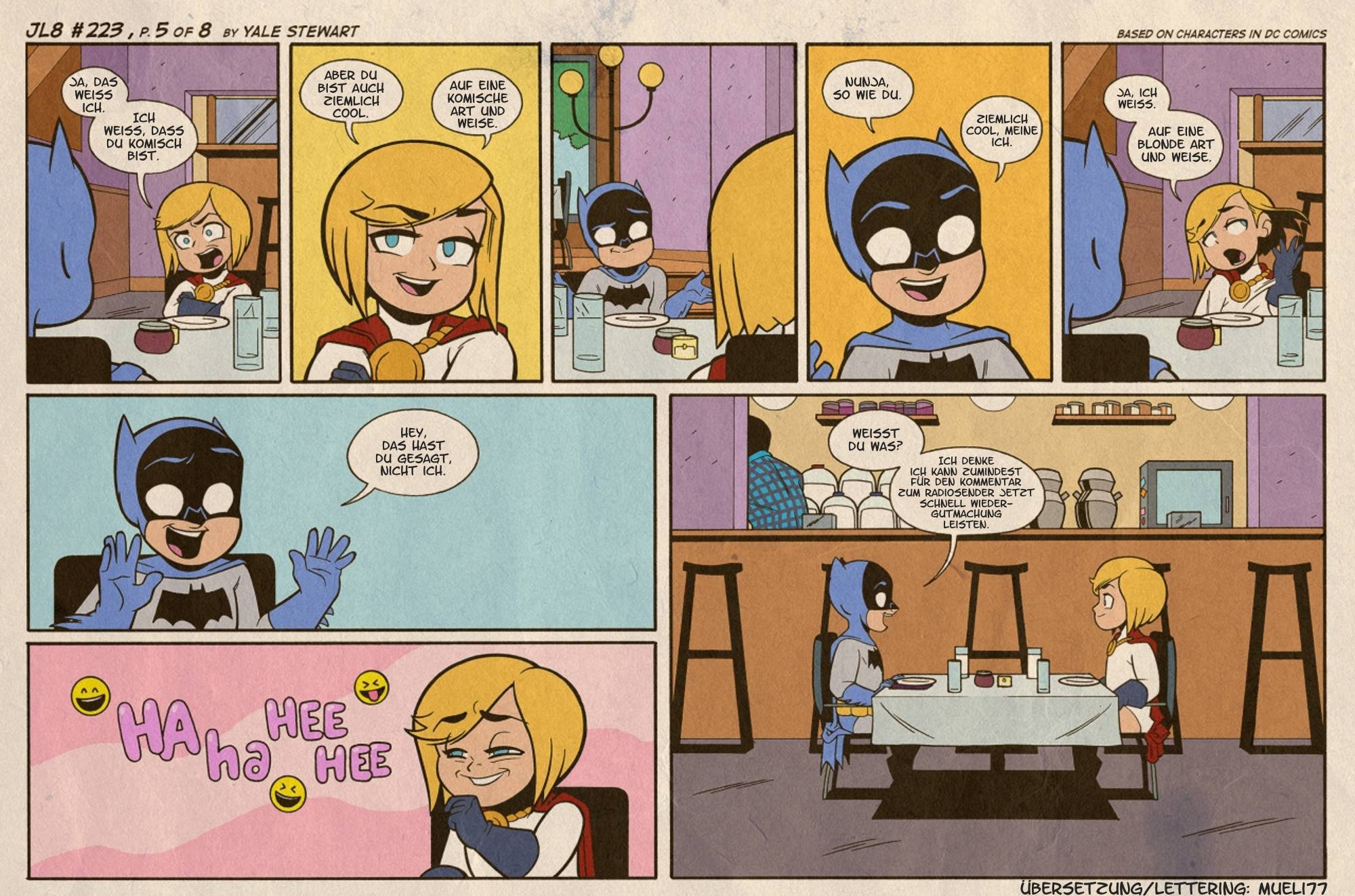 Okt 13 2016 JL8 Episode #223 (5) Bruce ist auf dem richtigen Weg … Viel Spaß damit! (für eine größere Ansicht auf das Bild klicken) Characters © DC Comics, Creative Content © Yale Stewart. (Fortsetzung folgt…) JL8 im Web: Tumblr, Facebook, Twitter © 2016 Copyright der Übersetzung by „Mueli77’s Feine Welt“. Jegliche Weiterverwendung ohne ausdrückliche Genehmigung untersagt. Bewerten:Teilen: Auf WhatsApp teilen (Wird in neuem Fenster geöffnet) WhatsApp Tweet Einen Link per E-Mail an einen Freund senden (Wird in neuem Fenster geöffnet) E-Mail Drucken (Wird in neuem Fenster geöffnet) Drucken Auf Tumblr teilen Auf Reddit teilen (Wird in neuem Fenster geöffnet) Reddit Auf Telegram teilen (Wird in neuem Fenster geöffnet) Telegram Pocket Auf Mastodon teilen (Wird in neuem Fenster geöffnet) Mastodon Auf Nextdoor teilen (Wird in neuem Fenster geöffnet) Nextdoor Gefällt mir Wird geladen … Ähnliche Beiträge