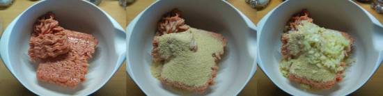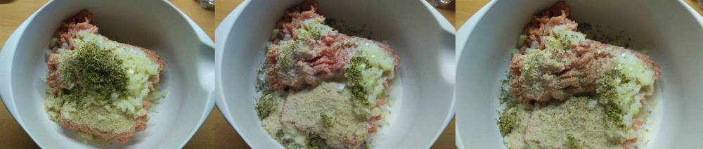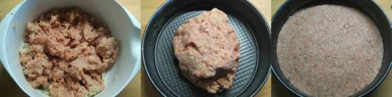 Es beginnt mit dem Boden. Als Erstes müsst ihr alle Zutaten für den Boden in einer Schüssel miteinander vermischen. Beginnt am Besten mit dem Hackfleisch. Je nach Wunsch könnt ihr Rind, Schwein, Geflügel oder auch eine Mischung von mehreren dafür verwenden. Dazu gebt ihr dann das Semmelmehl und die klein gehackte Zwiebel.