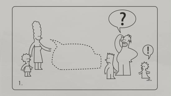Couchgag: Im Stil einer Aufbauanleitung wünscht sich Marge eine neue Couch. Nachdem Homer eine besorgt hat und beim Aufbauen daran kläglich gescheitert ist, klaut er einfach die von Flanders. Staffel 27, Folge 22 „- (Orange is the new Yellow)“ (VABF15)