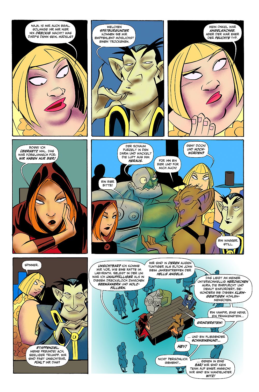 Ein Vampir, eine Hexe, ein Monster und ein Fledermausmensch gehen in eine Bar … Hört sich an wie der Beginn eines lausigen Witzes; ist es auch! Aber der Weg zur Pointe ist gespickt mit allerlei irrsinnigen Verstrickungen.