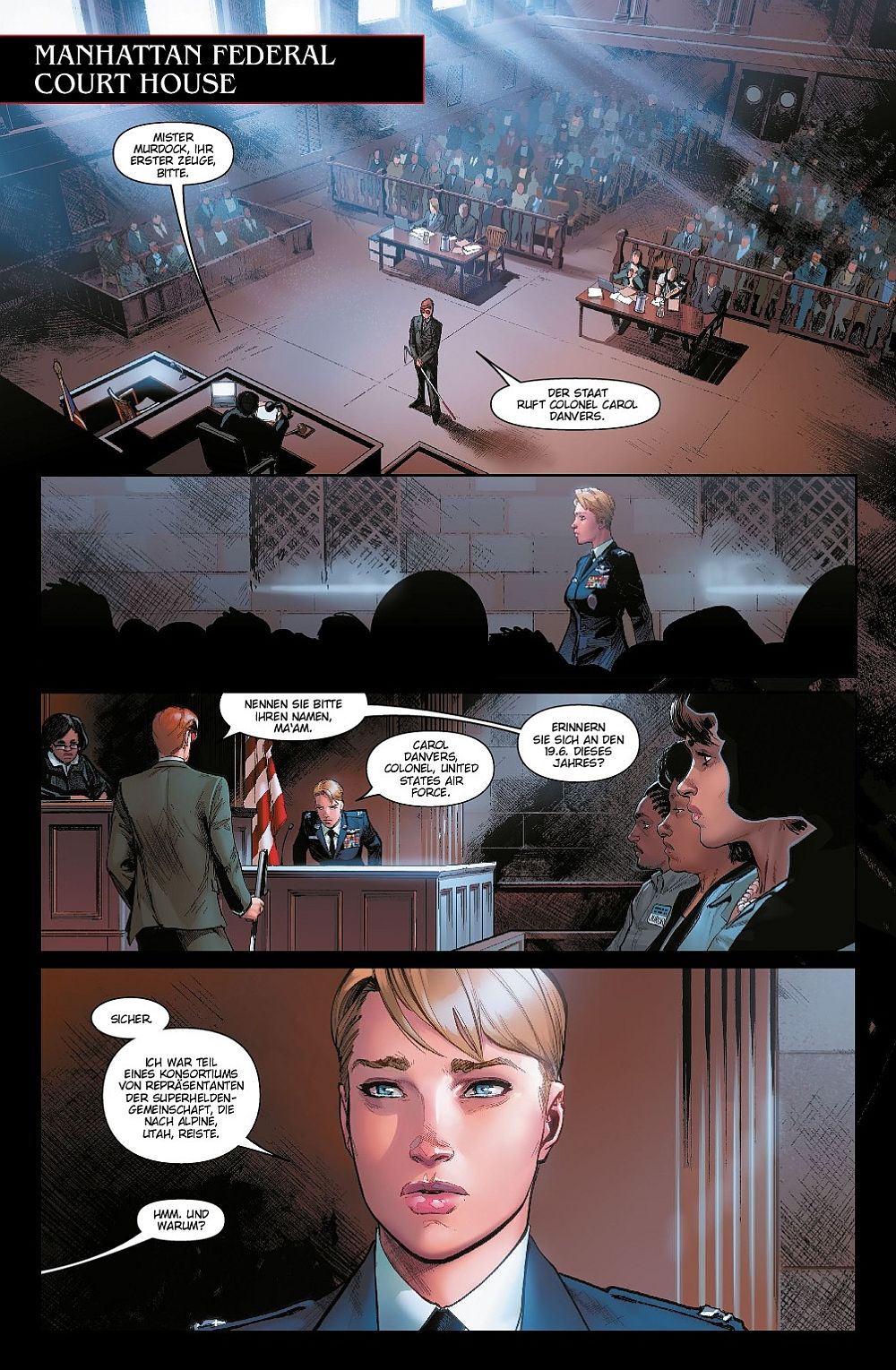 Dieses Heft beginnt vor Gericht. Der Leser erfährt im Wechsel und in Rückblenden die Geschichte um Bruce Banner und Hawkeye. Das ist äußerst spannend inszeniert, denn die Story endet mit einem Cliffhanger. Alle wollen das Urteil erfahren. Was wird mit Hawkeye passieren? Die Auflösung wird es jedoch erst im nächsten Heft zu lesen geben! Ganz nebenbei glaubt Iron Man auch noch zu wissen, wie die Kräfte (Visionen) von Ulysses funktionieren …