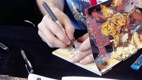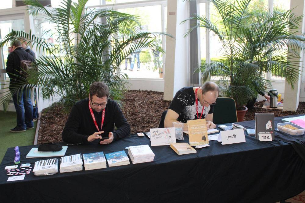 Neben Dani Books, bei dem als Künstler John Royle signierte und zeichnete, war auch der Independent Verlag Schwarzer Turm anwesend, der mit seinen Künstlern Olivia Vieweg und Ulf Salzmann überzeugte.
